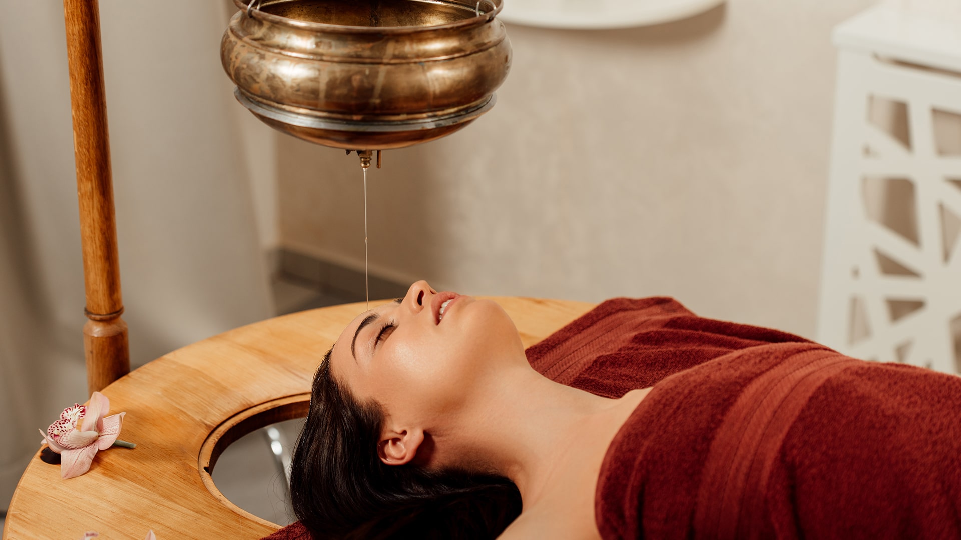 Shirodhara is a signature Ayurvedic therapy known for its profound ability to calm the mind and stabilize the nervous system